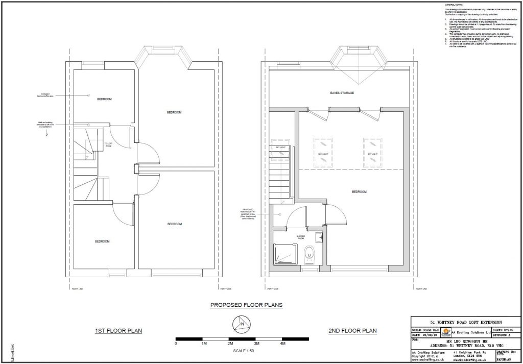 Location Plan & Site Plan (or Block Plan) | Show the property in context — neighbouring buildings, roads, plot boundaries | Use a standard scale (e.g. 1:1250 for location, 1:500 or 1:200 for site). Include north arrow, scale bar, road names, property outline. |